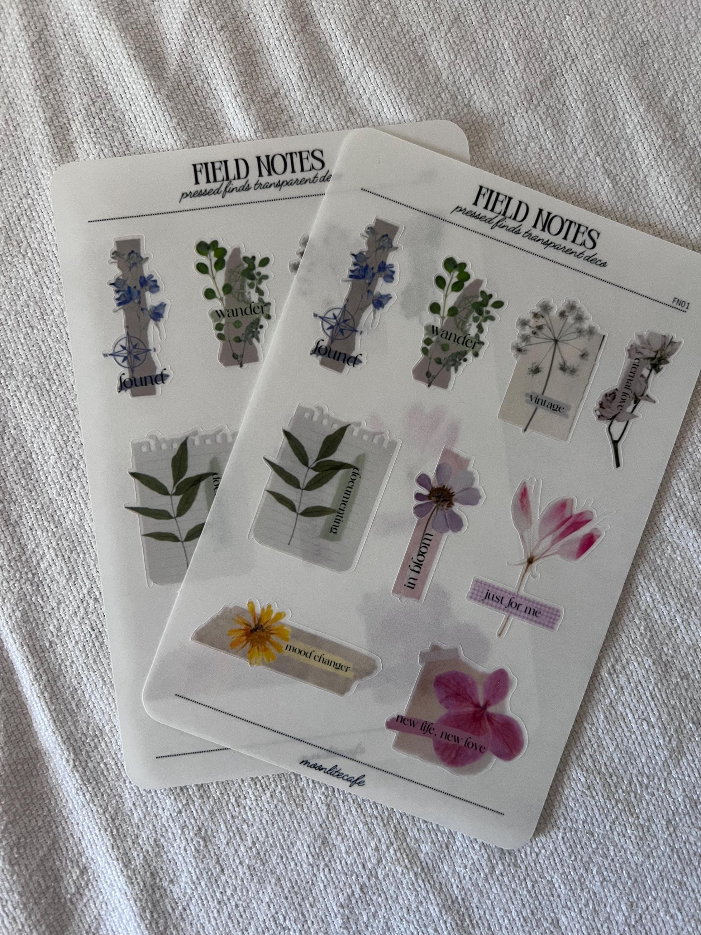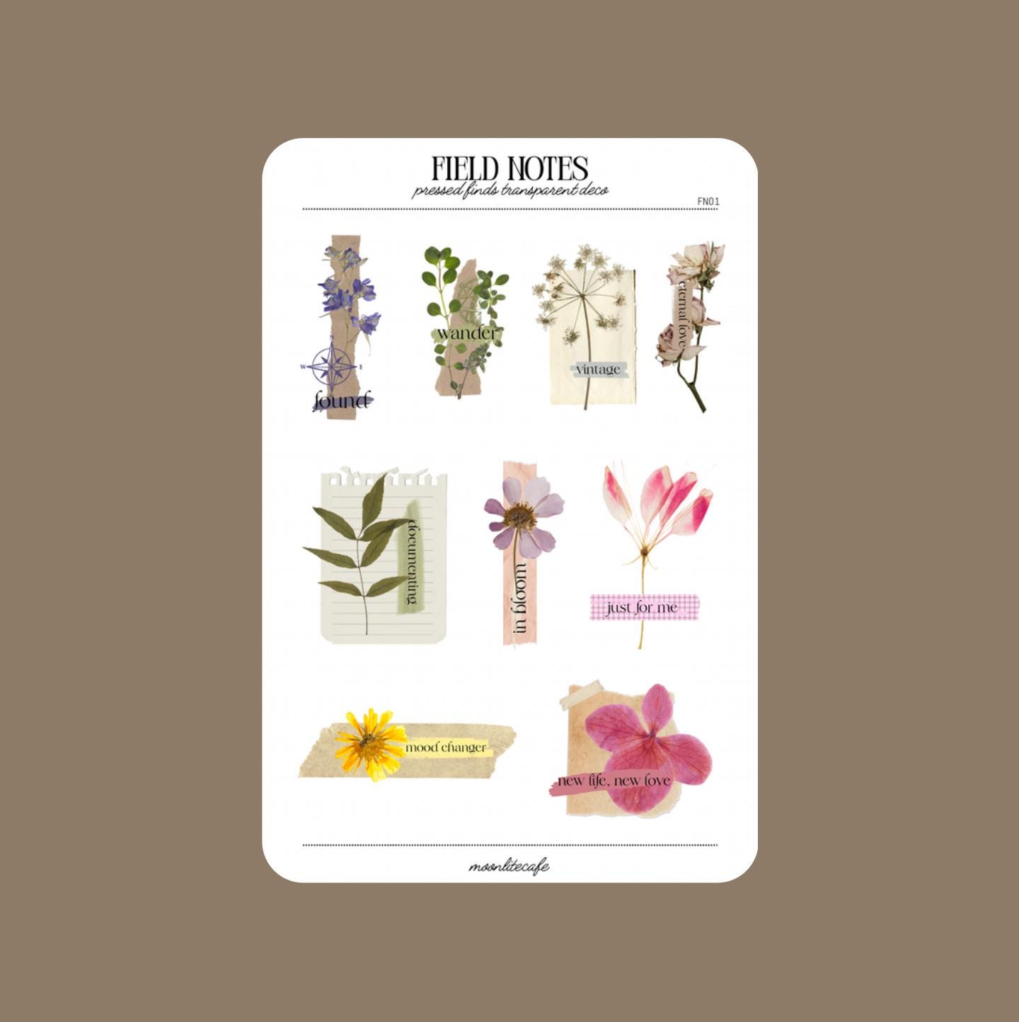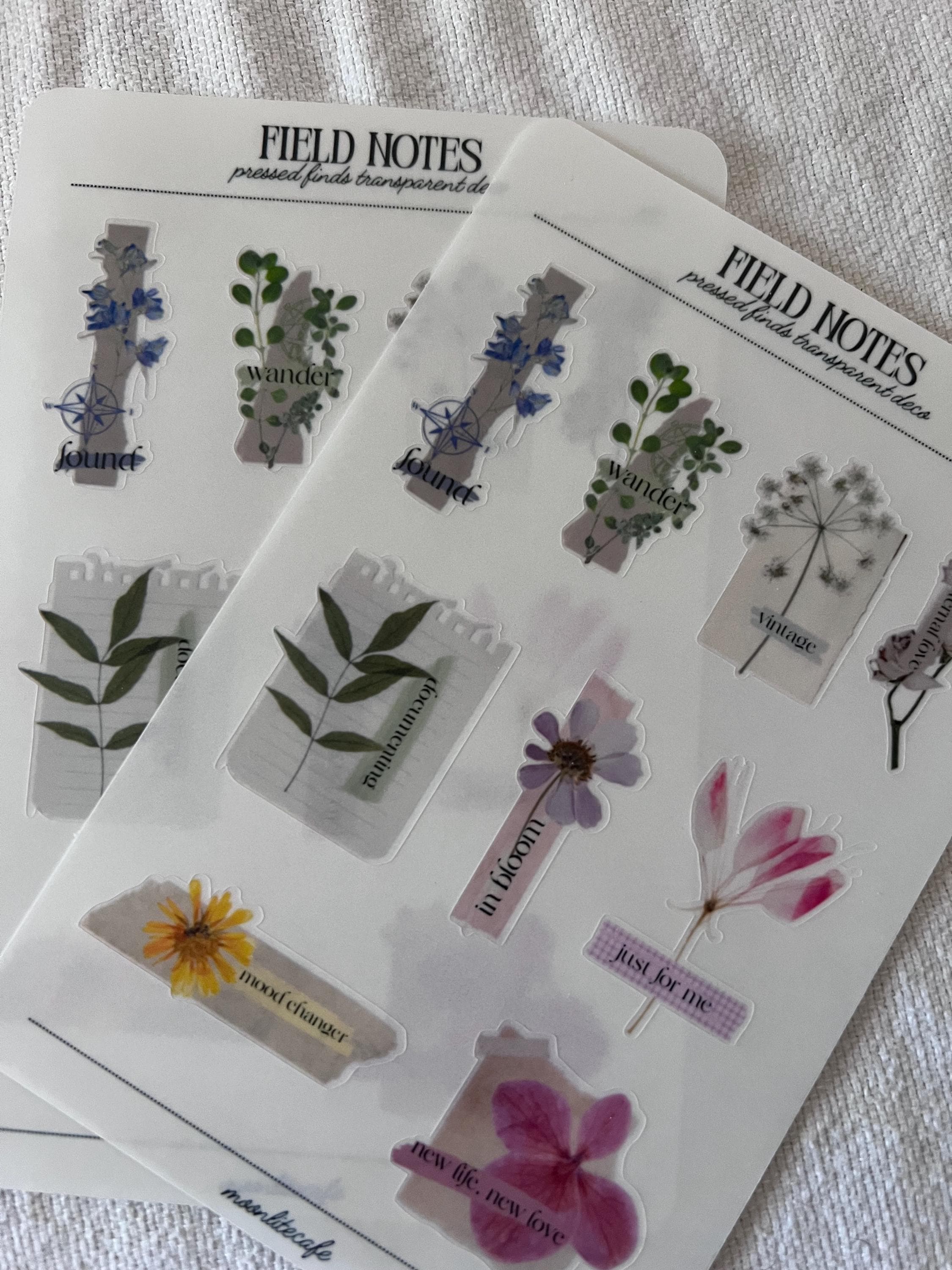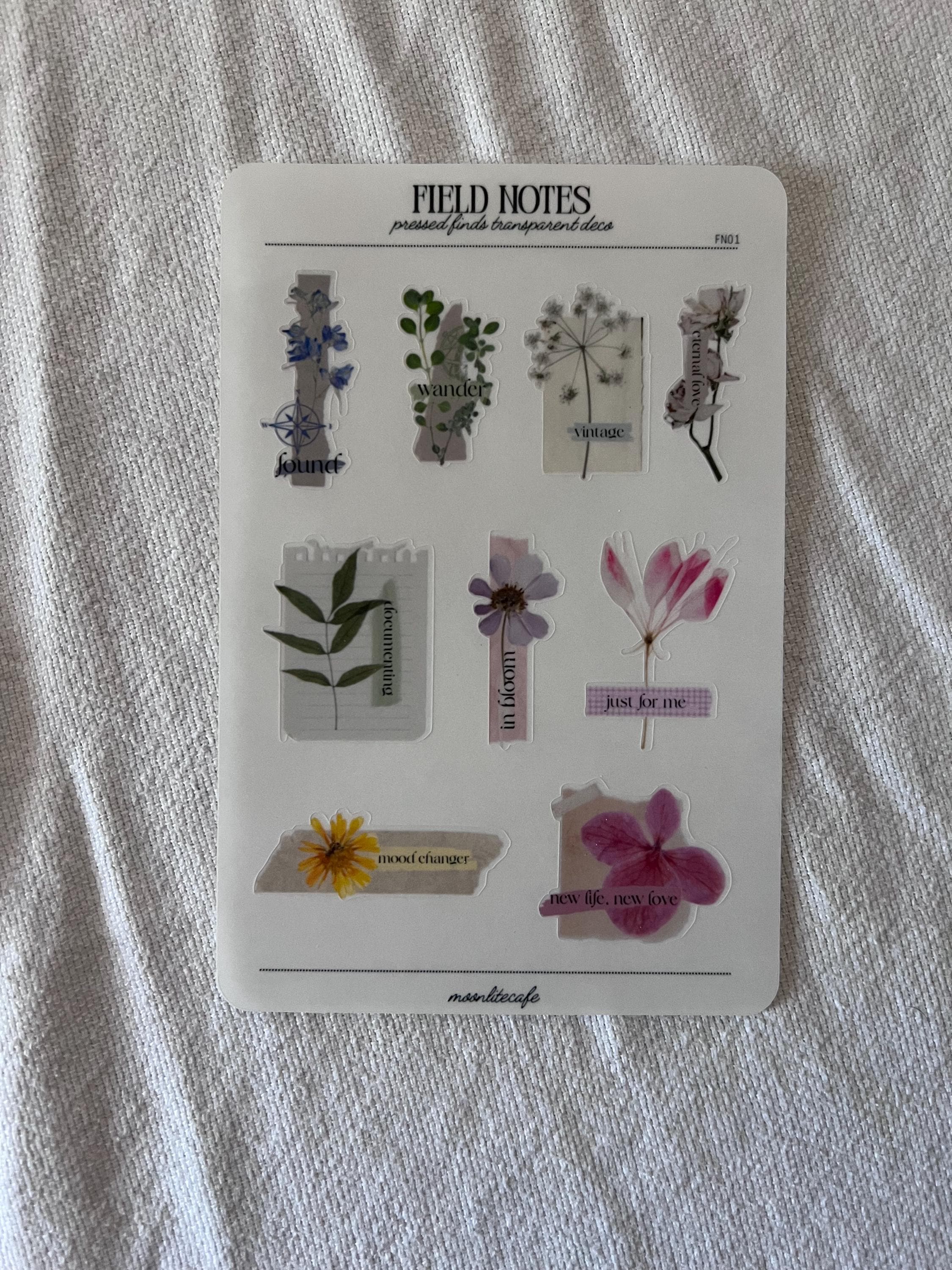 Field Notes is a collection of pressed flowers and plants decorated with vintage paper and text. Perfect for adding that extra deco to your planners and journals.