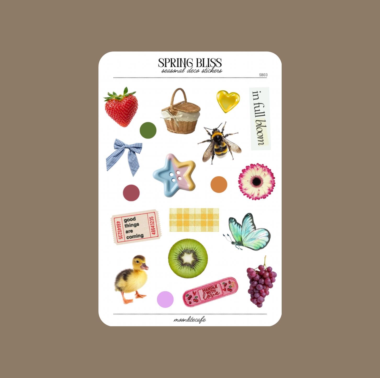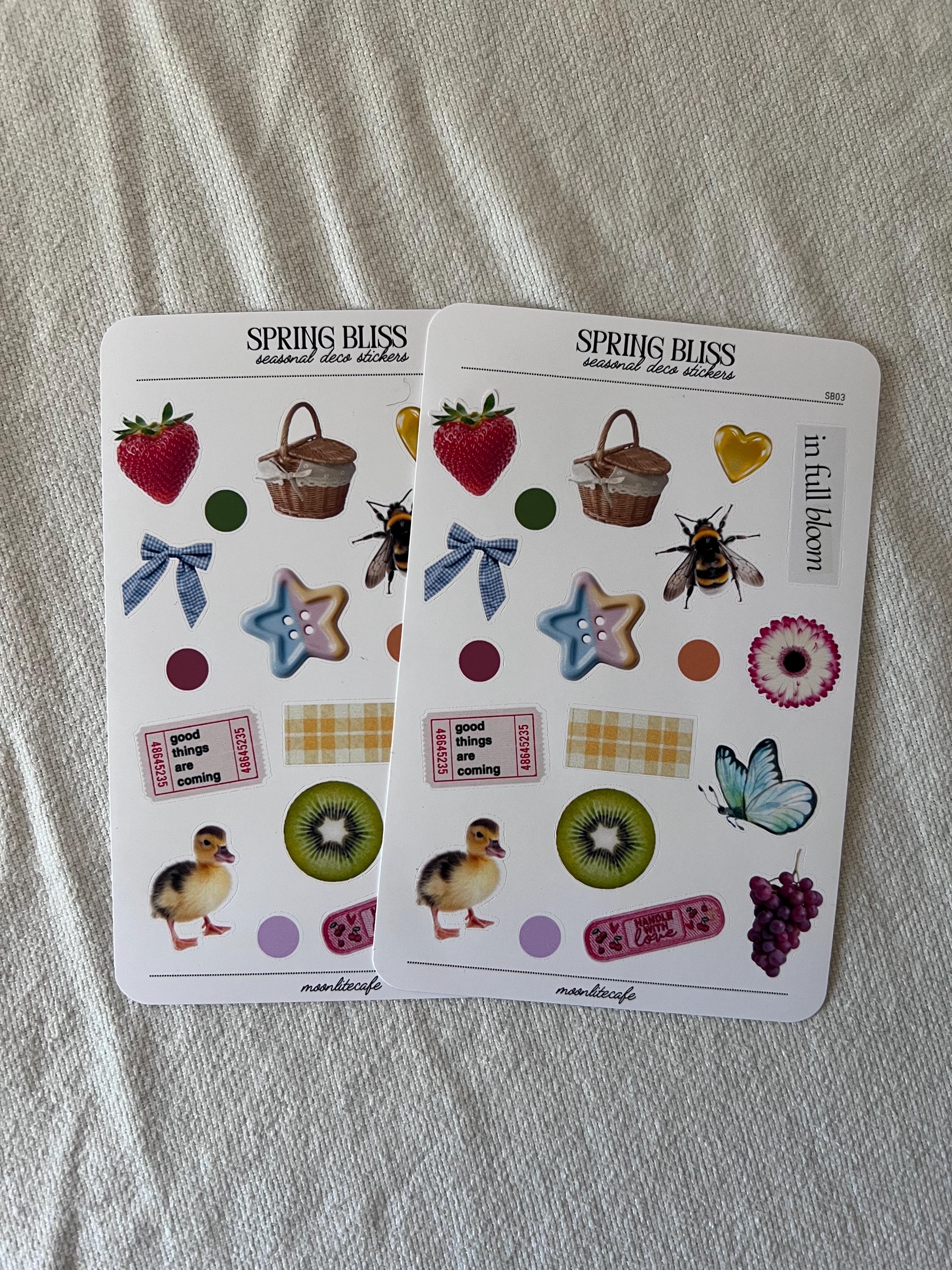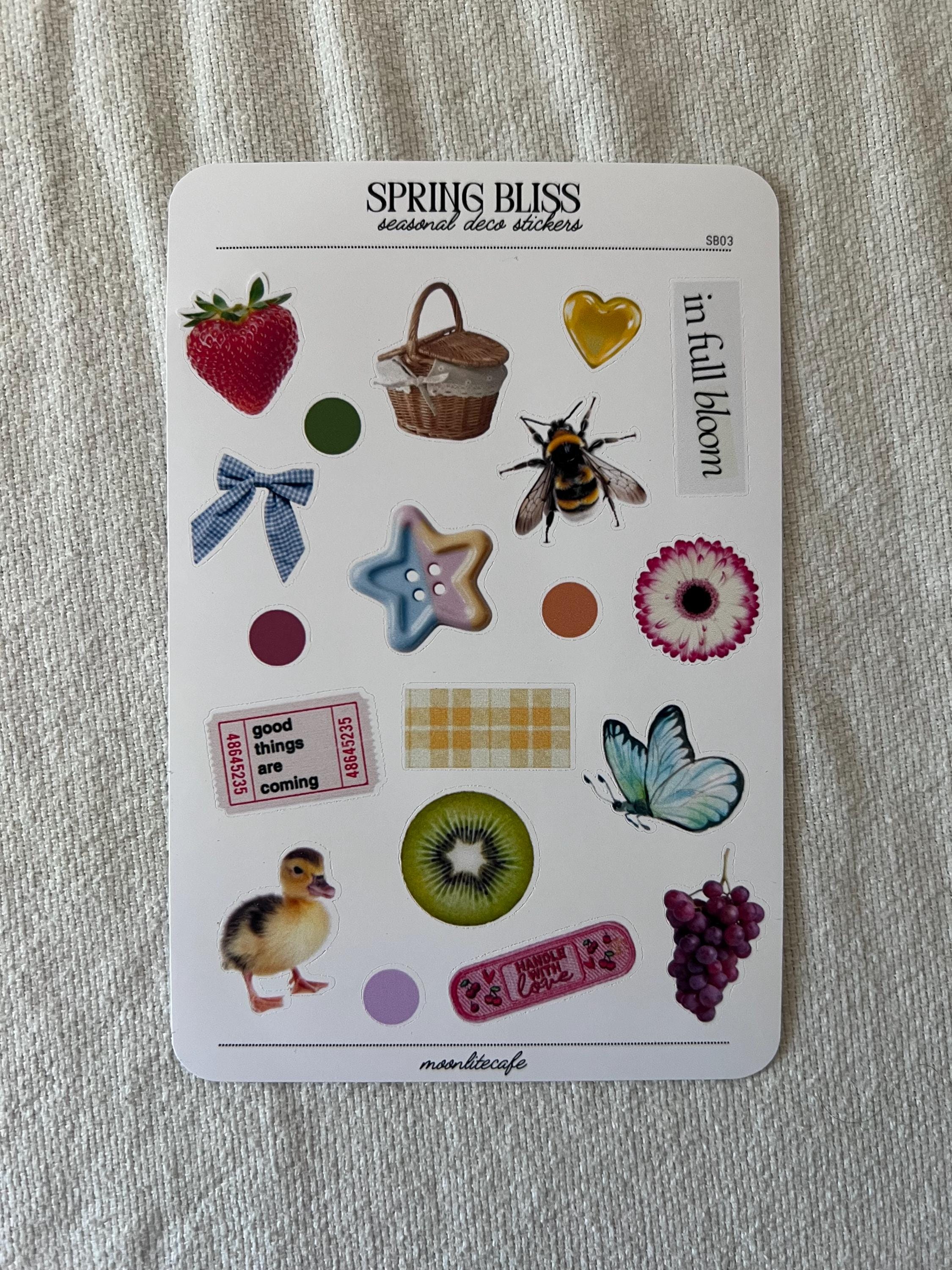 Part of the Seasonal Bliss Collection, Spring Bliss is a collection of spring aesthetics. Cute baby ducks, flowers blooming, picnic baskets and more. ✧ white sticker paper✧ 3 x 5 sheet ✧ dry use only